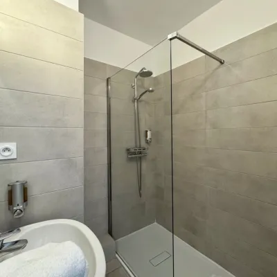 Les chambres Triple vous offrent le confort propice à votre bien être. Elles disposent d’une literie en 180 cm, un lit en 90 cm, salle de bain avec douche à l’italienne, climatisation, télévison TNT à écran plat LCD, mini bar et accès internet gratuit par connexion sans fil.