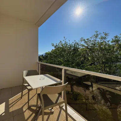 Vous serez logés dans le bâtiment « Les terrasses » face à l’hôtel qui n’est pas classé 3 étoiles mais bénéficie des mêmes prestations.